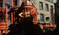 Speaking of Diagon Alley, the dragon atop Gringotts breathes fire. When we arrived, it wasn't crowded, and we saw a wizard-like figure wave his wand, and the dragon suddenly began to breathe fire.