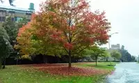 This university has no gates or walls and is completely open to the public. The atmosphere of autumn was already thick on the campus, and I wasn't far from there when I was captivated by the lawns covered in crimson leaves. Many people recommend visiting the University of Washington in spring for cherry blossom viewing, and during cherry blossom season, the streets near the central square are blanketed in bloom. I also think autumn is a great time to enjoy the crimson leaves. The emerald green lawns were covered in crimson leaves, and the gentle rain filled the entire campus with a sense of comfort and vitality, making me want to return to my student days and enjoy campus life!