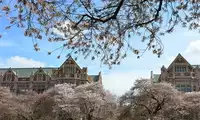 The campus is large, the buildings are very quaint, and it has a university atmosphere. The cherry blossoms are very beautiful when they are in full bloom. You must encounter good weather.