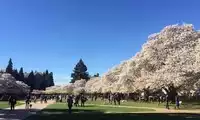 The cherry blossoms and the library are beautiful in April. If the weather is good, you can see Mount Rainier.