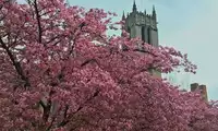 Not only are there super beautiful Gothic buildings, but there are also cherry blossom trees all over the campus.