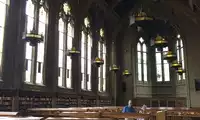 Upon entering the campus, the atmosphere of the school was overwhelming. There were many towering trees and 150 years of history. It is one of the most beautiful campuses in the world. The architectural style is completely different from the University of Southern California and Stanford University I had seen before. The school library was the most stunning. The spiral staircase was very inspiring. The colorful glazed windows let in the sunlight from outside. It was really beautiful! I walked around the whole campus. There are modern buildings and historical buildings. The overall feeling was good.