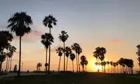 Venice is beautiful in the evening. There are many restaurants to choose from on the Venice beach.