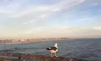 It is a very pleasant beach. The sky is so blue that makes people feel relaxed, and the waves are so white that people can't help but touch them. There are also flocks of seagulls and baby seagulls who are learning to fly. They seem to be racing with the waves, leaving rows of small footprints on the beach, and then fleeing in a hurry. Their little legs are so cute.