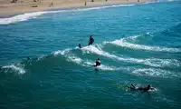 This beach is where the locals come. There are many people surfing... There are also people riding bicycles, running, walking their dogs, and playing basketball. In short, if you want to experience the sunny beach in California, this is the right place!