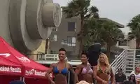 Very beautiful beach, and there are muscle shows, all kinds of handsome men and beautiful women