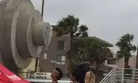 It is known as Muscle Beach and is not far from Santa Monica. There are many muscular men walking around on the beach, and the security is a bit chaotic at night.