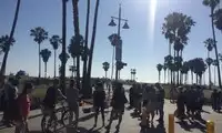 It's a beautiful beach, connected to Santa Monica Beach. There are cobblestone paths, many performers, and people selling goods. The atmosphere is great!
