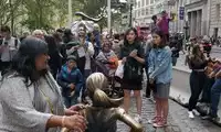 The Charging Bull (Wall Street Bull) is incredibly easy to spot. Just dive into the crowd and you'll be greeted by its imposing presence. It symbolizes American money, power, greed, and high-stakes financing. It's a beloved sight, becoming the second most photogenic statue in New York City after the Statue of Liberty, with countless people circling it for photos. In March 2017, a smaller bronze statue was added to the bull's facade. State Street Global Advisors spent billions of dollars commissioning American sculptor Christine Vibar to create a fearless, akimbo-faced Latina girl, named Fearless Girl. This sculpture has also sparked controversy, with some criticizing her as too "feminist." The strongest objection came from Arturo, the Bull's creator. Since the addition of Fearless Girl, the area has seen an increase in visitors, particularly young women.