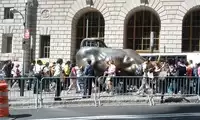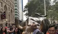 Seeing the long queue, you know the Wall Street Bull is ahead. Many people dream of getting rich, hoping to touch the bull to change their luck. This mascot, symbolizing the stock market's upward trajectory, has been rubbed until it's shiny.