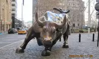 The bronze bull stands at the intersection of Wall Street and Broadway. It is a symbol of "strength and courage". Legend has it that as long as the bronze bull is there, the stock market will always be bullish.