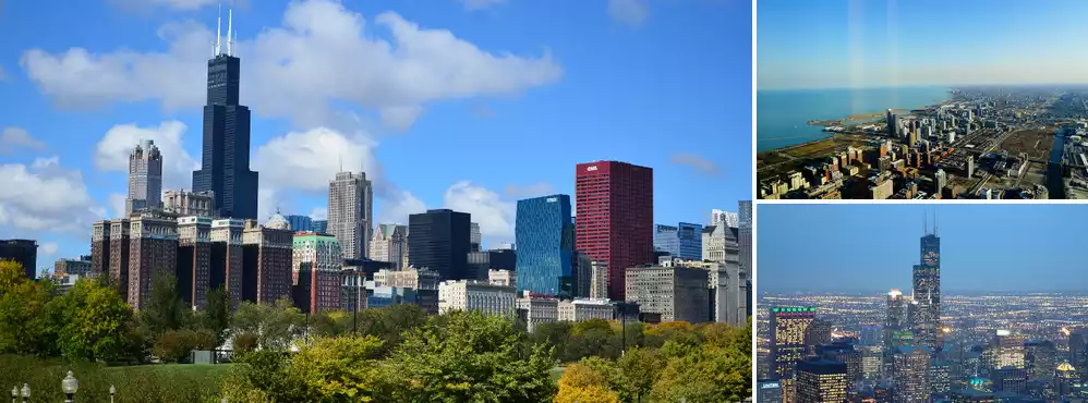 The Sears Tower, with its 110 floors, was once the tallest office building in the world. Approximately 16,500 people worked there each day. On the 103rd floor, there's an observation deck where visitors can overlook the city. From its height of 412 meters, on a clear day, four U.S. states can be seen.