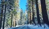 Yosemite in winter is blanketed in snow, presenting a completely different scene than in summer. We chose Route 41. There are several other routes that also lead into the park, but one was closed due to winter snow. Route 41 was the most convenient from our hotel's location; it was just a short drive from there. The drive from our accommodation to the park entrance took about an hour. It wasn't snowing in Yosemite town when we visited, but after a short drive along Route 41, you could see drifts of snow. Therefore, if you're visiting Yosemite in winter, be sure to bring snow chains! Four-wheel drive vehicles or those with existing snow tires don't need to worry, but two-wheel drive vehicles are absolutely required! They'll be checked upon entry, and not wearing them can be dangerous in winter, as the roads within the park are easily slippery due to the accumulated snow.