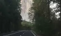 When I was looking up guidebooks, I noticed the unusual terrain of Yosemite National Park. The central area is Yosemite Valley, but for some reason, the map showed that whether entering the park from the east, west, or south gates, it took a long, long walk to reach the visitor center. It wasn't until I experienced it myself that I fully understood the secret behind these maps. Yosemite Valley is more than just a name; it's a real valley, surrounded by mountains. Every time I entered or exited the valley, I had to wind around the surrounding mountains, winding and winding, which was a real challenge for driving skills. Roughly every fifty meters, there was a sharp 90-degree turn or more, brushing against cliffs, which was terrifying and dizzying. [Motion sickness warning!] On this mountain road, the surrounding traffic wasn't particularly slow, and since it was a two-way single-lane road, I tried to stay close to the car in front of me to avoid overtaking the car behind me. So, it was a real challenge to have an experienced driver on board.