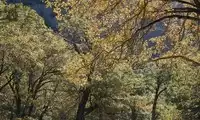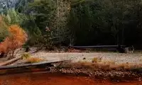 We set out from Mammoth Lakes this morning, heading north along Highway 395 before turning onto Scenic Route 120 east of Yosemite and entering the park. As we journeyed, we discovered that Yosemite's most beautiful scenery is found along every road leading in and out of the mountains. Coinciding with autumn, the California sunshine bathed the mountains and waters in a vibrant autumn glow. The scenery in the central valley, however, was somewhat less spectacular, as it was California's driest season. Several of the major waterfalls were running low, and Yosemite Falls had even dried up, leaving only traces of water visible on the rocks.