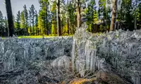 The trees on the mountain remain in their most original appearance, naturally broken or uprooted, showing their unyielding life even in death.