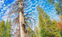 For a traveler like me with limited time in Yosemite, there are two main things to see: the giant trees and Yosemite Valley. These trees are truly enormous, the kind that cars can pass under and reach the sky. Some are left with only a layer of bark, as the saying goes, "a tree is alive only through its skin." Yosemite Valley, on the other hand, is a magnificent sight, a sudden, expansive experience that will leave you wanting to linger.