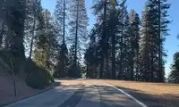In Yosemite National Park, you can see such complete and beautiful pine cones everywhere. If you like, you can pick some and bring them back home. They won't be checked at customs. However, due to the wildfires, taking the 120 out of the north gate, the pine cones on the ground were probably burned by the people and turned black.