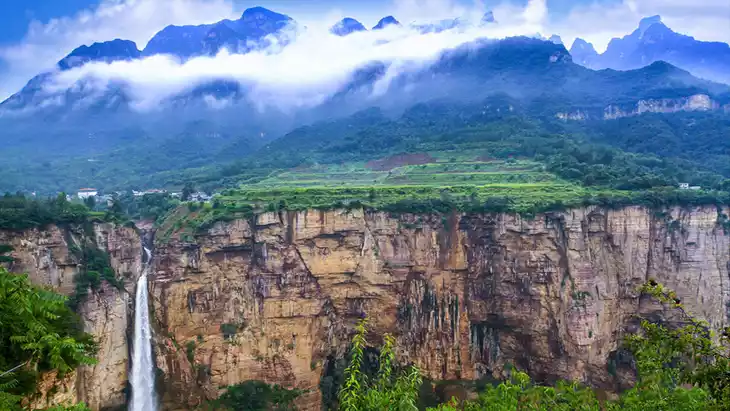 The scenic area comprises three major scenic areas: Pangu River, Huashan, and Baibao Cave. It stretches from the Shanxi provincial border in the west to the Shimen River in the east, from the foot of the mountain in the south to Baligou in the north. The landscape gallery, landslides and fissures, and ancient mining relics bear witness to the evolution of the Guanshan region's landscape. The spectacular Wolong Waterfall, the rippling emerald waters of Longtan Lake, the charming Shidao Courtyard, the cascading waterfalls of Hongshiyuan, the majestic and treacherous Yixiantian (One Line Sky) and the mysterious and profound Baibao Cave offer breathtakingly beautiful scenery.