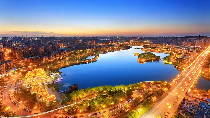 Designed by renowned architect Zhang Jinqiu, Qujiang Lake Ruins Park covers 471 mu (approximately 1,088 m) and was completed on July 1, 2008, on the site of the original Qujiang Lake. The lake stretches only 1,088 m from north to south, with varying widths from east to west, reaching a maximum width of 552 m. It is divided into the Upper and Lower Pools and is open to the public free of charge.