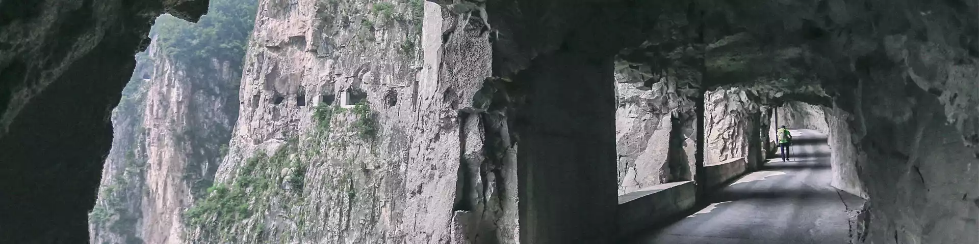Guoliang Cave is a cliff-hanging road in Guoliang Village, Shayao Township, Huixian County, Xinxiang City, Henan Province. It's also known as the Guoliang Cave Cliff Road, Guoliang Tunnel, Guoliang Tunnel, Wanxian Mountain Cliff Corridor, and Guoliang Village Cliff Corridor. Completed in 1977, it was entirely handcrafted by the villagers of Guoliang Village. The thirteen villagers who primarily excavated it are known as the "Thirteen Warriors" of Guoliang Cave. Guoliang Cave is considered one of the "Ten Most Dangerous Roads in the World" and one of the "18 Most Unique Roads in the World."