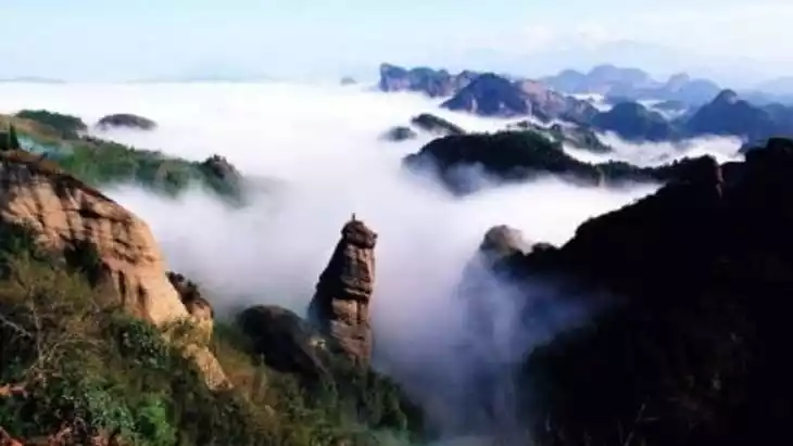 Guanzhishan is celebrated for its distinctive Danxia landforms and rich cultural heritage. The mountain's unique shape and geological features make it a significant natural landmark in Fujian Province.