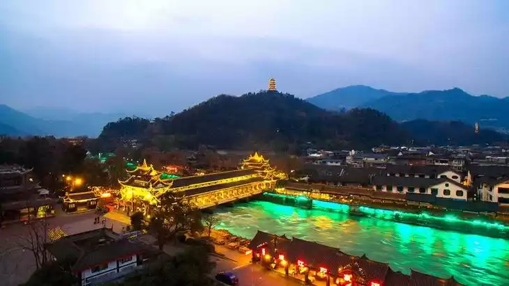 Lingyan Temple, located at the foot of Qixingyan Rock on Lingyan Mountain in Xingfu Town, 5 kilometers north of Dujiangyan City, is known as the "Lingyan Holy Lamp" and was once one of the "Ten Scenic Spots of Guan County." The temple's Buddhist statues primarily feature Guanyin, and the spacious halls are resplendent with golden emerald greenery. Shaded by pines and fir trees, birdsong, and rock carvings create a vibrant and natural scene. Numerous cultural relics and historical sites surround the temple. Nearby lies the Black Wind Cave, said to be connected to the Erwang Temple and named after the black wind that occasionally emanated from it. To its left stands the Thousand Buddha Pagoda, a solid stone stupa in the form of a covered bowl.