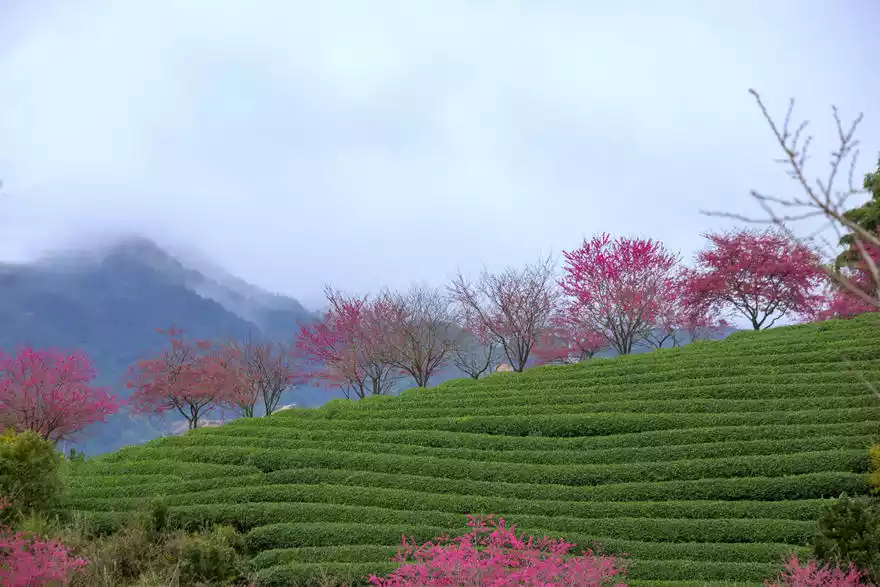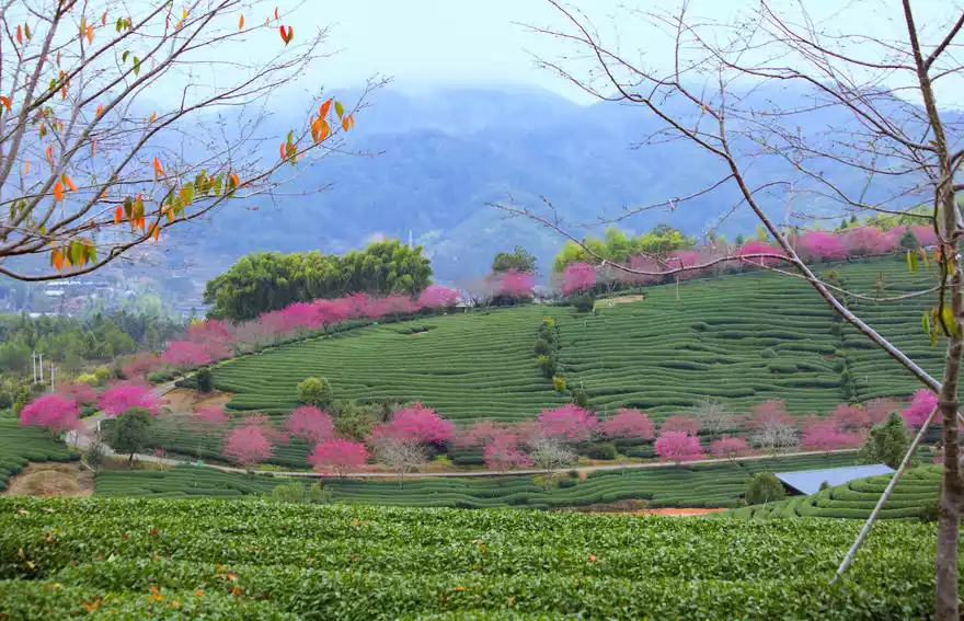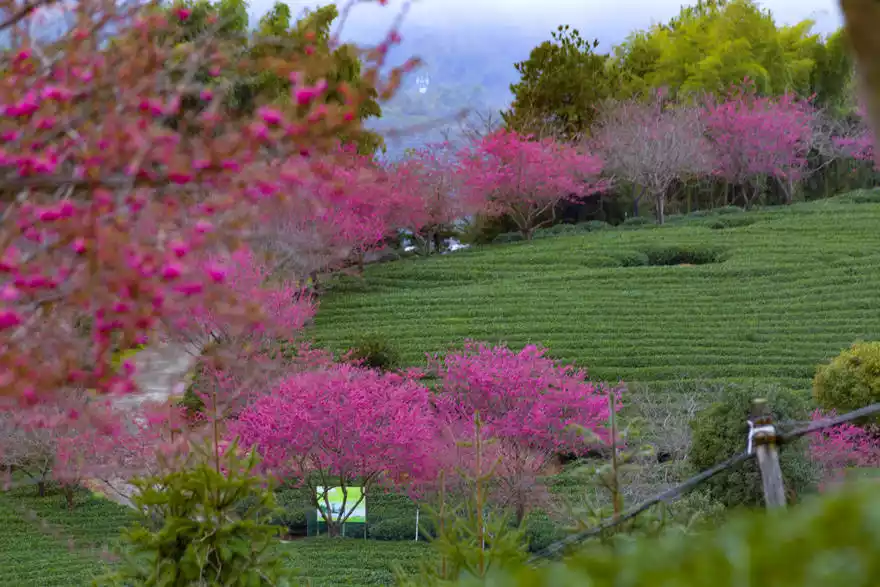 As pictured above, aren't you stunned? Every cherry blossom season in Alishan, Taiwan, brings a breathtaking display of blossoms blanketing the mountains. The cherry blossoms of Yongfu equally captivate us with their beauty. Speaking of cherry blossoms, it's worth mentioning Yongfu's tea plantations, also invested in by Taiwanese businessmen. They produce China's highest-quality high-mountain cloud tea, and a relaxing cup of tea at the tea plantations is truly captivating! Is there anything more relaxing than enjoying tea and cherry blossoms?