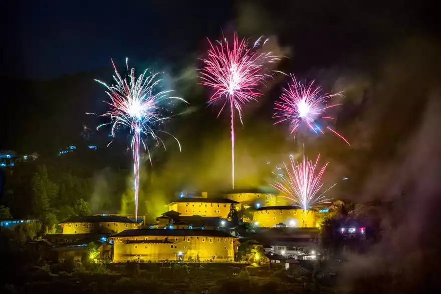 The iconic Tulou building is a must-see when visiting Fujian. Of course, photographers, besides capturing it in a serious way, are sure to come up with many new ways to capture it, such as creating fireworks above the building, or using digital cameras' multiple exposures and small apertures to capture unique Tulou images.