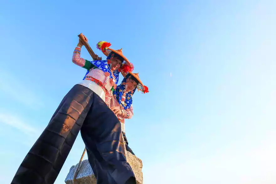 When it comes to Fujian's fishing women, the most famous are the Hui'an women,Xunpu women, and Meizhou women.Hui'an women refer to a unique group of women from the Huidong Peninsula coast of Hui'an County, Quanzhou, Fujian. They are renowned both domestically and internationally for their unique attire and hardworking spirit. Hui'an women, more narrowly defined as Huidong women, are primarily found in the four towns of Chongwu, Shanxia, Jingfeng, and Xiaoqi in eastern Hui'an, Fujian. They are authentic Han Chinese.A doggerel poem, surviving from the early years of the Liberation, vividly captures the characteristics of the Huidong women's traditional attire: "Feudal head, democratic belly, thrifty clothes, wasteful pants." When visiting Fujian, a must-see is capturing the Hui'an women at work. Whether carrying stones or shouldering loads, they embody the demeanor of hardworking Han Chinese women!