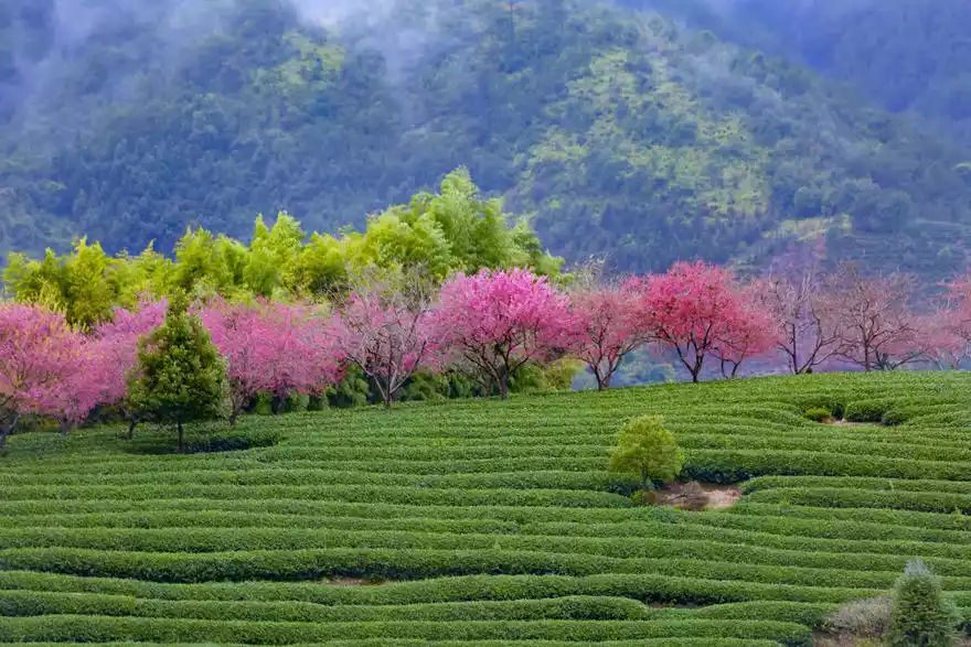 There aren't many tea gardens in China that pair cherry blossoms with each other. The most famous is the tea and cherry blossom garden in Wuliang Mountain, Dali. However, as its fame grows, so too does the Wuliang Mountain cherry blossoms attract a large number of tourists. The huge crowds during the cherry blossom season each year are a headache for photographers. The cherry blossom season in Wuliang Mountain is short, making it difficult to predict the weather when visiting. Yongfu Cherry Blossom Garden perfectly solves this problem.