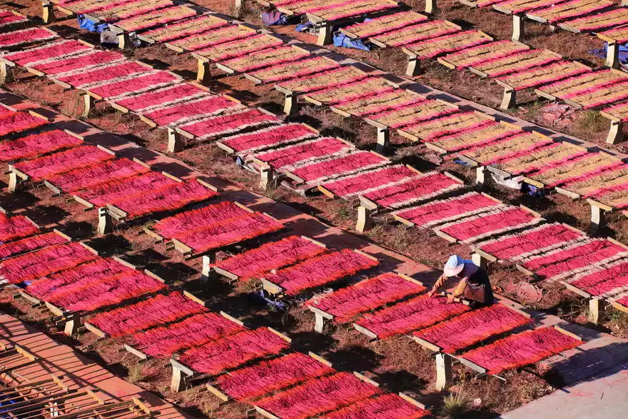 Yongchun bamboo incense boasts a long history, crafted using hundreds of traditional Chinese medicinal herbs and following ancient methods. The production process involves over a dozen steps, including applying the base, applying the inner powder, spinning the incense, drying the incense, and dyeing the incense base. While seemingly simple, it requires expert skill. As one of China's four major incense production centers, it's on par with Xinhui in Guangdong, Xiang'an in Xiamen, and the ancient city of Hebei. The various styles and colors of incense are incredibly diverse. The post-production drying process is particularly striking, with the various incense sticks spread out across the courtyard, creating a vibrant display of fragrance and vibrant colors, comparable to the autumn sun-drying scene at Huangling in Wuyuan. It's a perfect spot for photography enthusiasts!