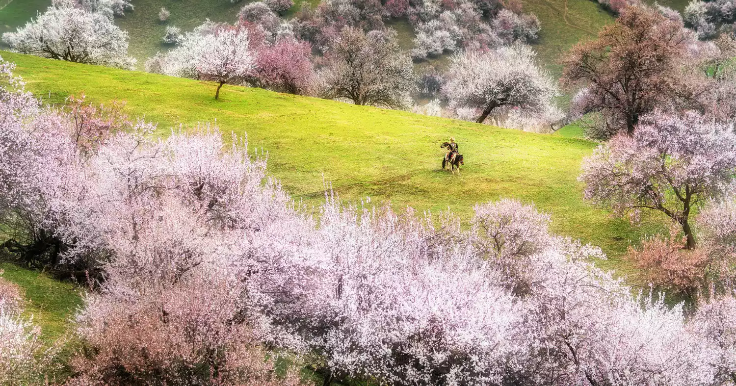 Located in Turgen Township, Xinyuan County, Ili County, Xinjiang, Apricot Valley boasts hillsides covered in wild apricot trees, the largest remaining grove from the Middle Ages. Concentrated and scattered along the northern bank of the Gongjisi River, the grove covers over 30,000 mu (approximately 1,000 acres) and is one of the most concentrated wild apricot forests in my country. In March, the Ili River Valley enters a beautiful and romantic season, with fruit and grass blossoms blooming in succession on the mountains and grasslands, creating a breathtaking spectacle. Although the blooming season lasts only a week, it remains an unmissable and must-see attraction.