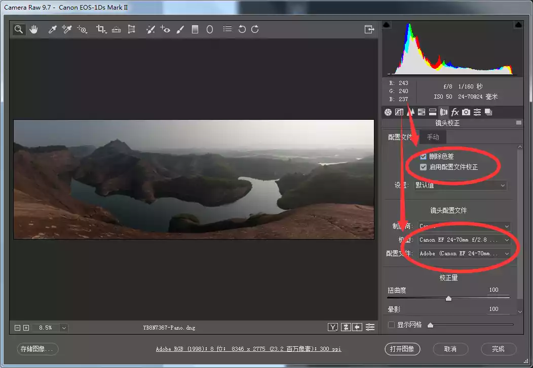 8. First, correct and remove lens distortion and chromatic aberration (purple and green edges)