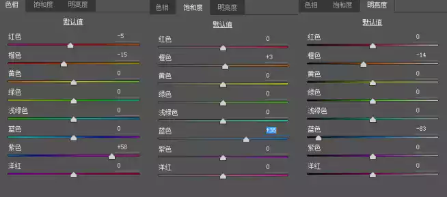11. Fine-tune the color and adjust the overall color in the "HSL Grayscale" column. Adjust the following color parameters as shown in the figure