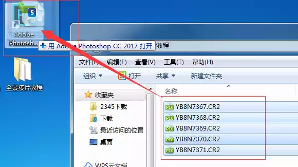 1. Find the photos you want to stitch (in raw format), select all of them, and drag them into Photoshop.