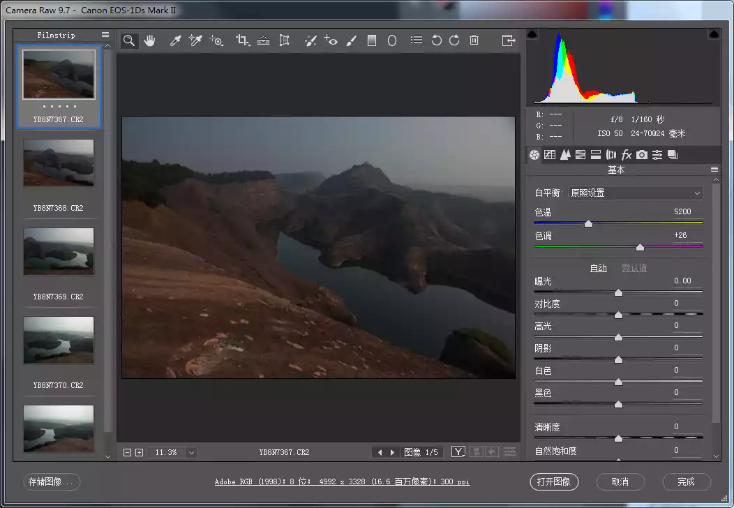 2. When you open a raw format photo in Photoshop, the camera raw plug-in will be automatically started. The left side shows the list of all imported photos.