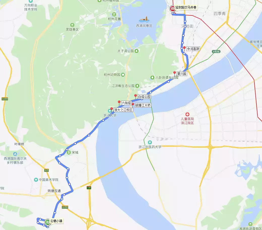 Yan'an Road Yinma Lane - Nanxing Bridge - Zhijiang Road - Yunqi Town>