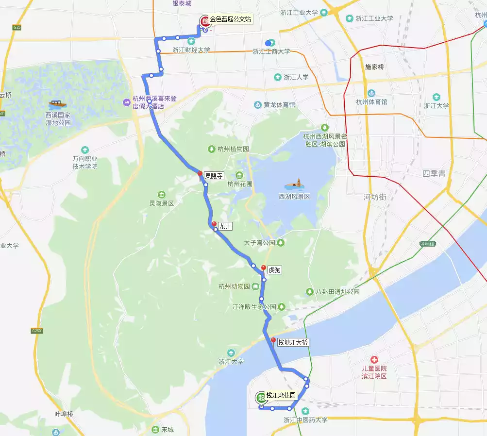 Route 180 starts from the west of the old city, passes through the West Lake mountains from the Meiling Tunnel, and then crosses the river to Binjiang. It connects the scenery of the West Lake and Qiantang River from two eras. The tranquility deep in the West Lake, the majestic vicissitudes of the Old First Bridge, and the prosperous scenery of Binjiang are all contracted by this bus line.