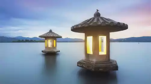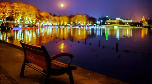 The best vantage point for photographing Leifeng Pagoda is from a boat on the lake. The lotus blossoms at night, fragrant with dew and wind, and the moonrise over the lake reveals the beauty of West Lake at night.