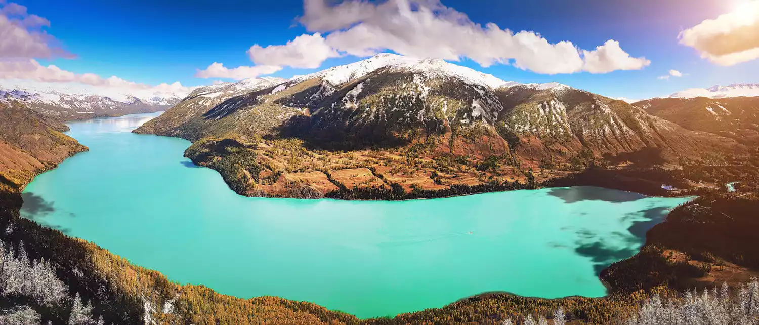 Kanas is the iconic landmark of northern Xinjiang. Climbing the Fish-Watching Terrace offers panoramic views of Kanas Lake. Beneath the mountain lies the quaint Tuva village, where small wooden houses constructed from locally sourced materials evoke the charm of a Swiss town. The road winds down along the Kanas River, revealing a constantly changing landscape. While the lake monster is a gimmick, the color-changing lake is real. Kanas Lake's color changes with melting snow, rainfall, and shifting light, showcasing vibrant shades of turquoise, clear gray, emerald, dark green, and milky green depending on the season. Behind it, the Altai Mountains evoke a Nordic forest. Every autumn, golden birch, apricot-yellow larch, fiery red European poplar, and evergreen pine and cypress create a vibrant spectacle that would put any Impressionist painting to shame.