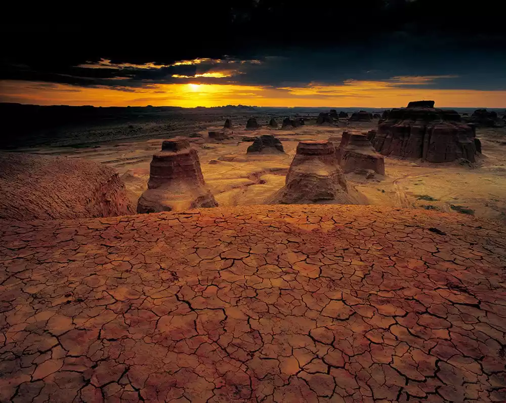 One hundred million years ago, this area was once a vast lake. Wind erosion and flowing water, relentlessly eroding it, carved countless fragmented, jagged gullies, creating the modern-day sculpture-like Urho Yardang landform. The fierce winds of the Junggar Basin whirlwind through the Devil City, colliding with it and occasionally emitting demonic cries, hence the name Urho Devil City.