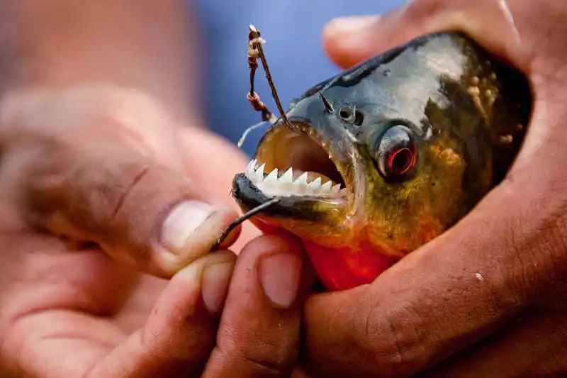 Piranha Fishing: The Amazon piranhas are quite famous, and just imagine how exciting it would be to try. Piranhas have very sharp teeth, so catching them can be challenging, as they can easily take the bait without swallowing the hook. But it's worth a try. Even if you're not good enough, your guide can still help you catch a couple. Simply salt and grill them back at the resort, and they're delicious! The meat is incredibly tender.