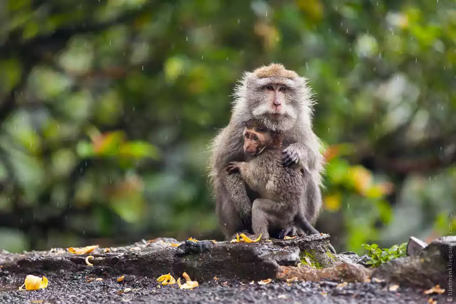 Looking for monkeys: The guides will bring fruit to visit the monkeys. Bananas are no longer their favorite; mangoes are their favorite! They eat them like crazy! This is just one of the monkeys we saw; they're not afraid of people. You can also see other species of monkeys that can only be seen from a distance.