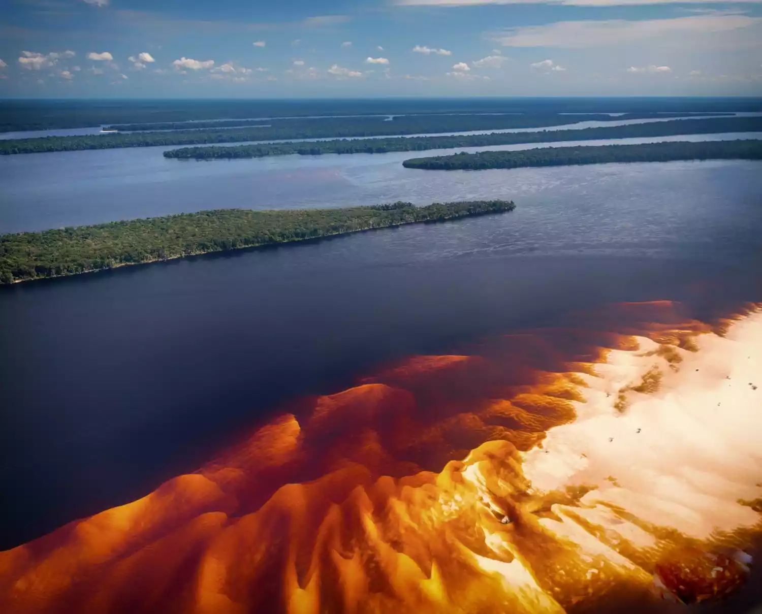 Black River Rafting: The Amazon's rivers, sometimes brown and sometimes dark brown, are commonly known as the Black River. The different gravities and flow rates of the two rivers create the picturesque scenery. It's quite unique—it feels like a half-brewed cup of coffee. The Black River's water is incredibly clear, and its calm surface reflects the branches on either side, making for stunning photos.