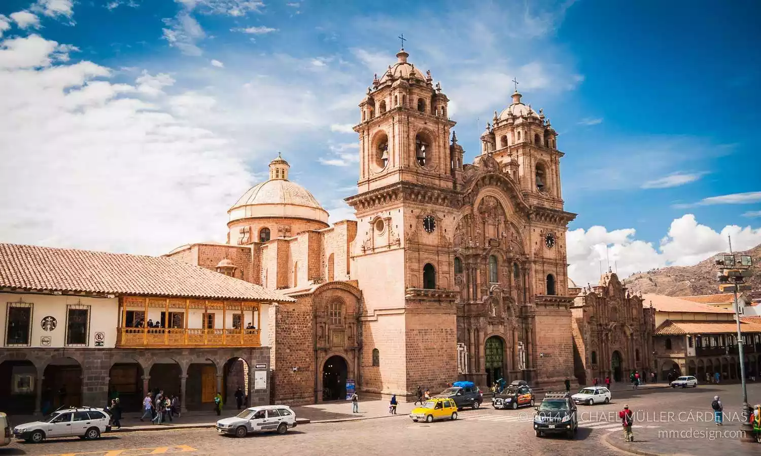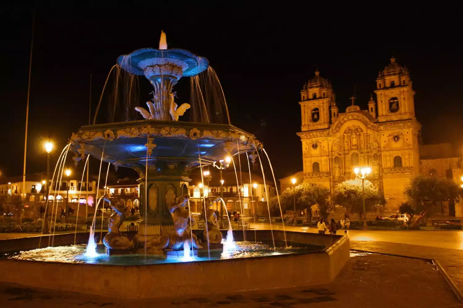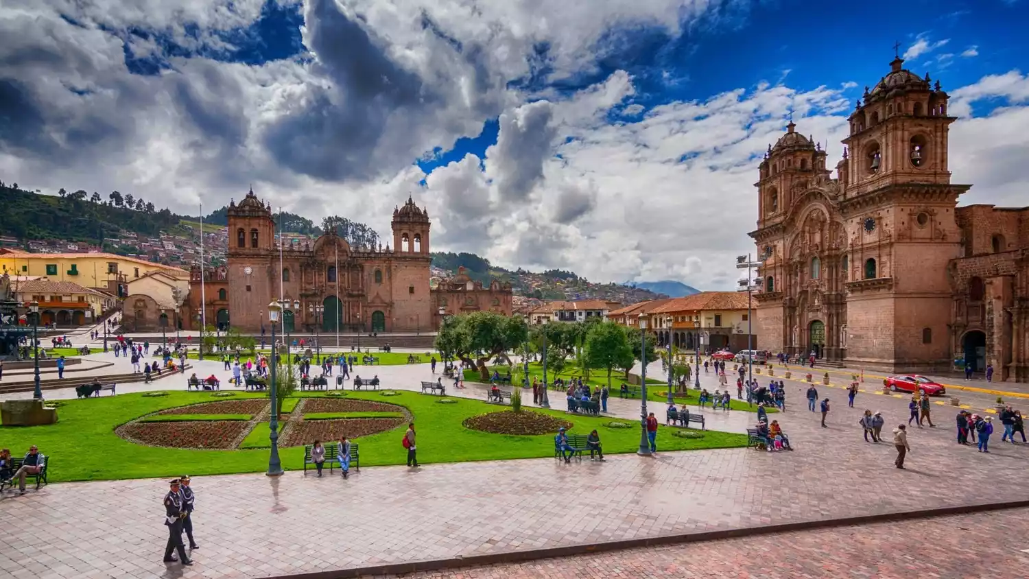 Cusco's Plaza de Armas is the busiest spot in the city. On one side of the square is the Cusco Cathedral, with two flags flying in front of it: the red and white Peruvian flag and the colorful striped flag of the Inca Empire. In the center of the square, a bronze statue of Condorcanqui, the Peruvian national hero who resisted Spanish colonial rule, gazes down upon the world. He claimed to be a descendant of the Inca emperor and led the Inca people in numerous rebellions before being executed by the colonizers.