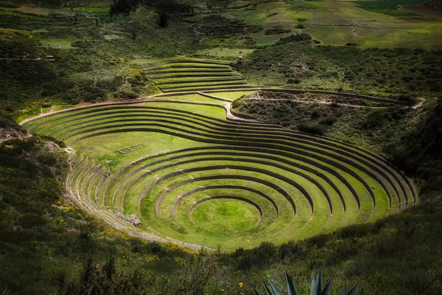 The Morei Rice Terraces are a unique Inca relic, with their circular terraces arranged in a regular pattern, rising from high to low. The view from above is unusual yet beautiful. The largest terrace has a drop of 30 meters. Archaeologists are unsure why the Inca designed it this way, but it's said that the combination of height, exposure to the sun, and shade creates a temperature difference of up to 15°C between the lower and upper levels, allowing for the cultivation of different crops. Even those accustomed to this experience find it surprising.