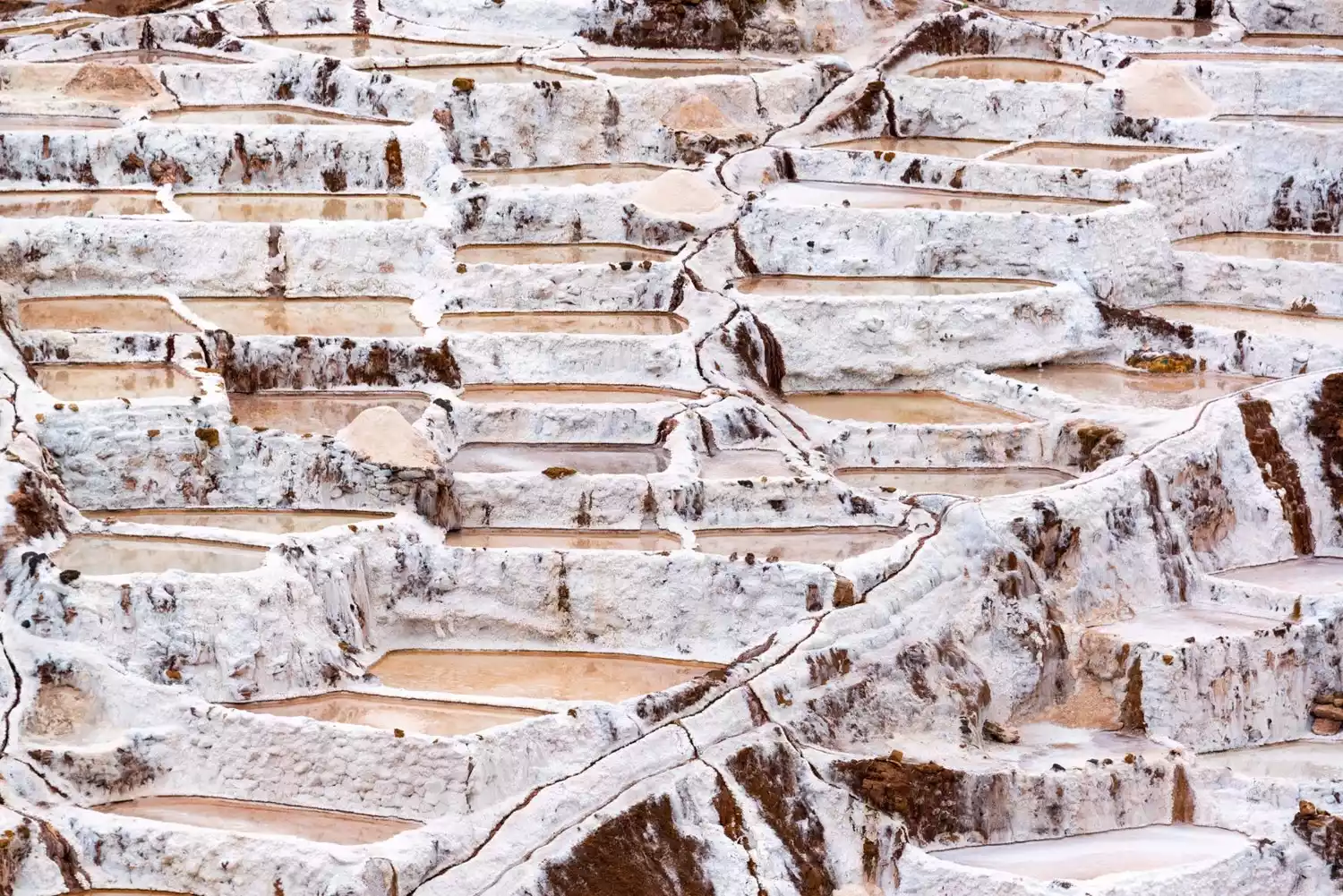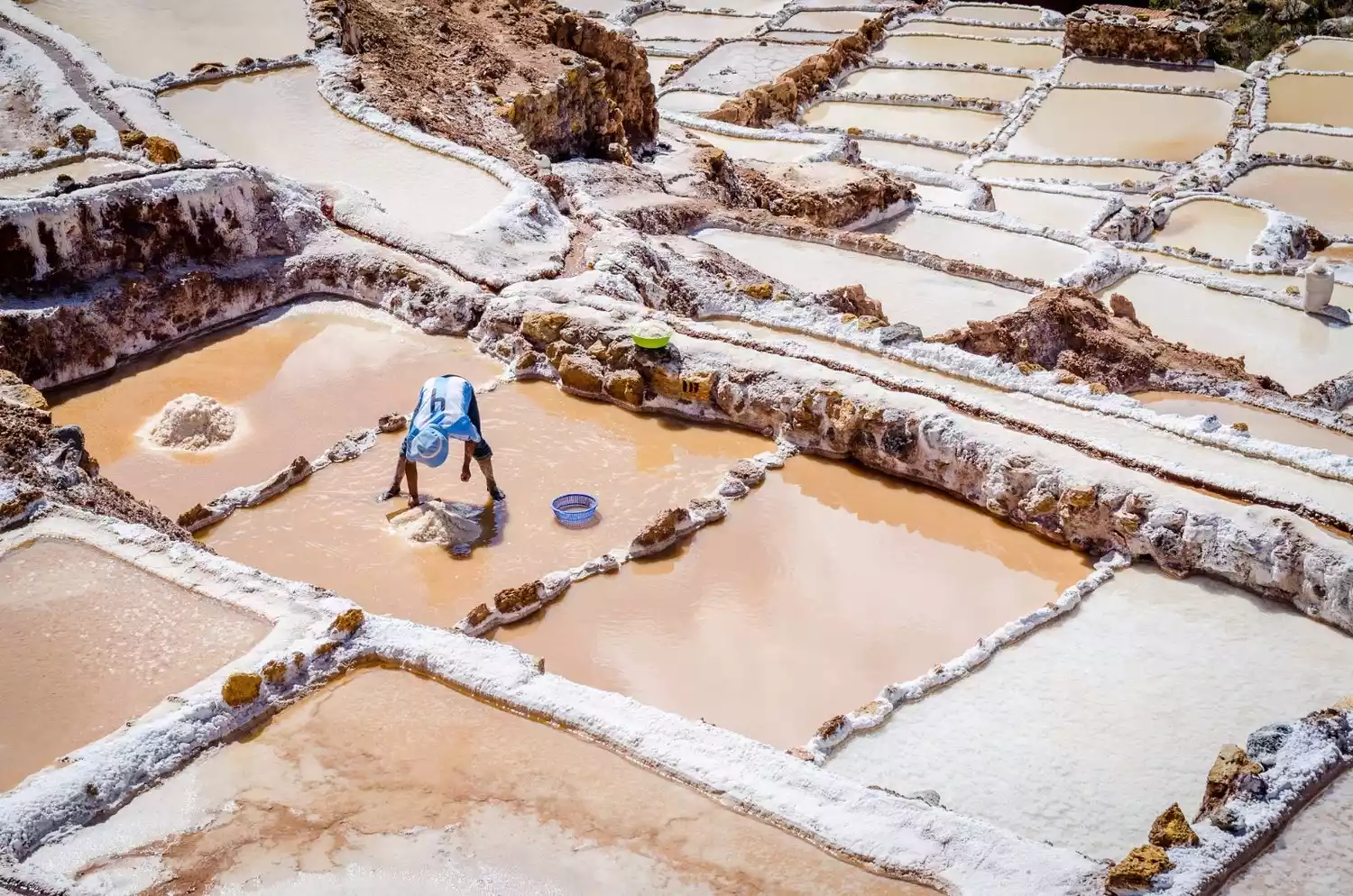 My favorite attraction is the Maras Salt Pans near Urubamba in the Sacred Valley. These salt pans predate the Inca Empire and are still in use today. The locals have devised a complex drainage system to channel the highly saline spring water into thousands of terraced pools throughout the valley. As the water evaporates, the salt crystallizes and precipitates, allowing the salt to be harvested for consumption. From above, the view of over 3,000 white terraced salt pans, layer upon layer, is truly spectacular.