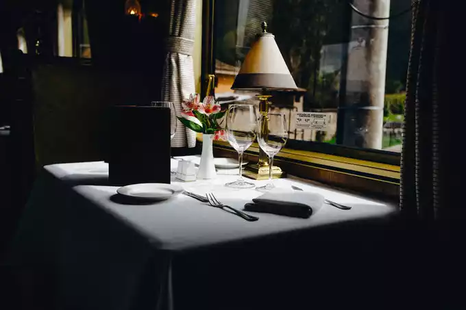 The tableware and wine glasses on the table gleam with quality, while a small table lamp accentuates a sense of classic elegance. Frosted glass decorations and lamps bring a charming medieval atmosphere to the carriage, while exquisite artwork is embedded in the mahogany walls.
