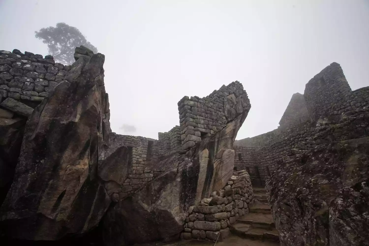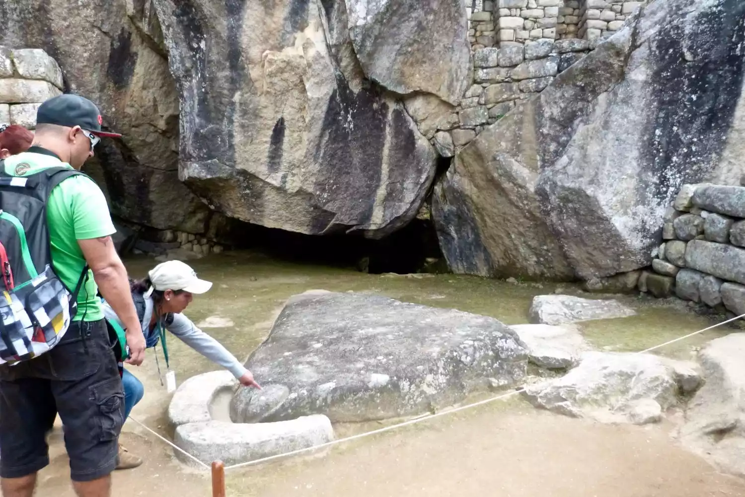 At the end of Machu Picchu is the entrance to Huayna Picchu. Next to the entrance to Huayna Picchu is the sacred stone. The Incas worshipped mountains, especially triangular peaks, so they used huge stones to depict the shape of the peaks for worship.